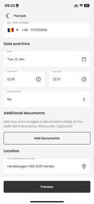 You can now upload images and documents directly to your job ads in the app. This allows you to include files such as work schedules, role descriptions, guidelines, maps, safety instructions, or venue photos.